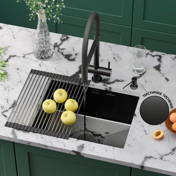 Кухонная мойка Roxen Simple 560220-60B PVD графит (с коландером и дозатором)